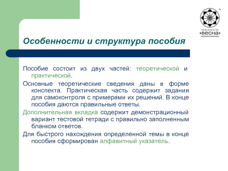 Слайд 20Особенности и структура пособия