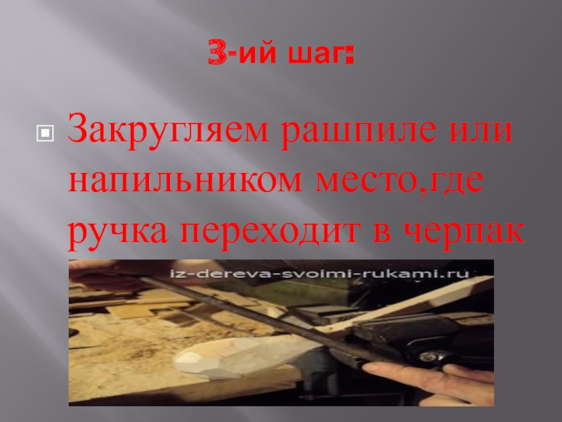 Закругляем рашпиле или напильником место,где ручка переходит в черпак