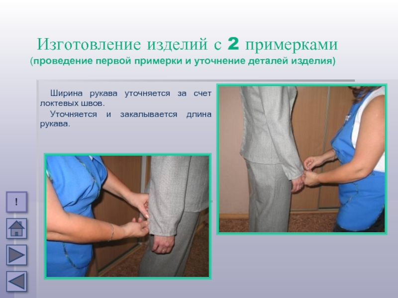 В этот алгоритм могут вносится изменения в зависимости от модели, особенностей фигуры заказчика и результатов первой примерки. Так, в модели серого жакета ко второй примерке принято решение не обрабатывать окончательно воротник, так как клиент не уверен в размерах воротника, форме отлета и концов, а также есть проблемы с определением степени прилегания воротника к шее.