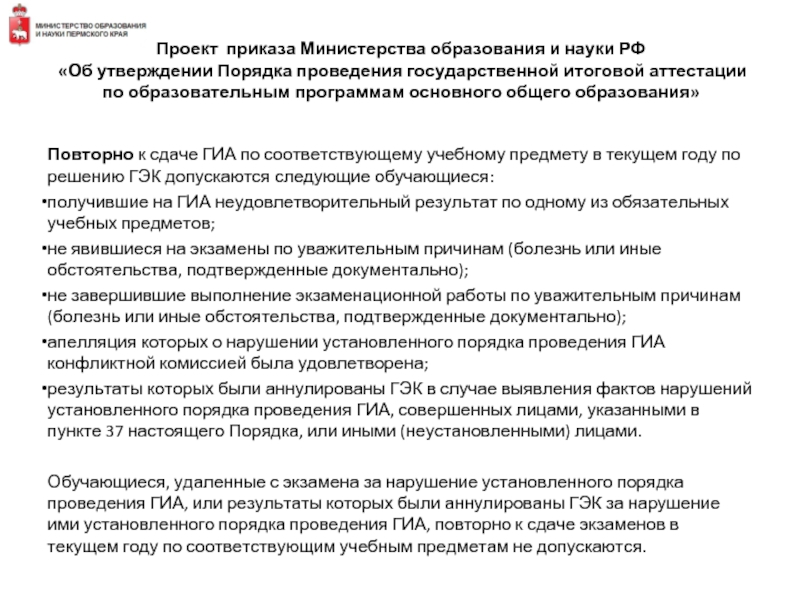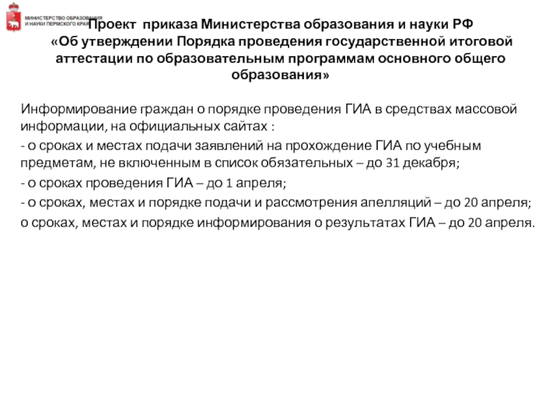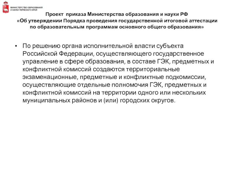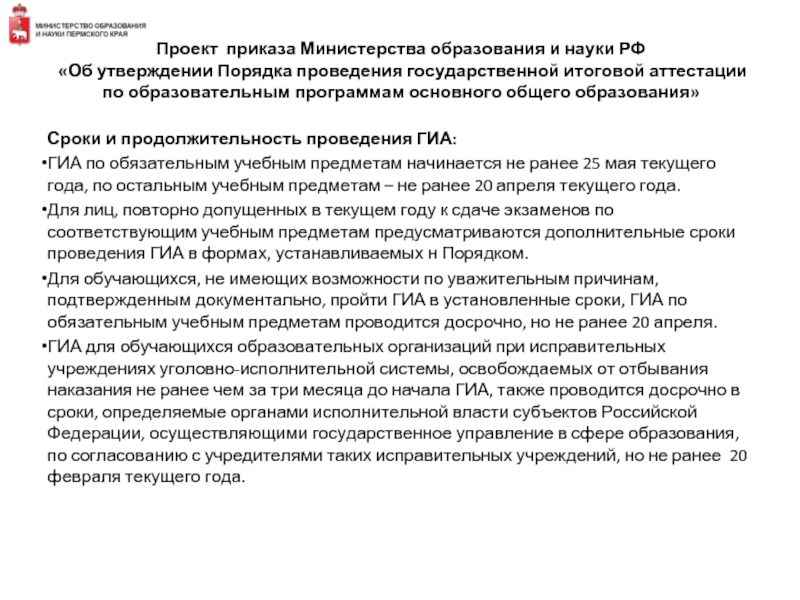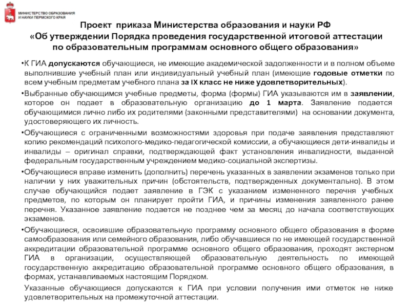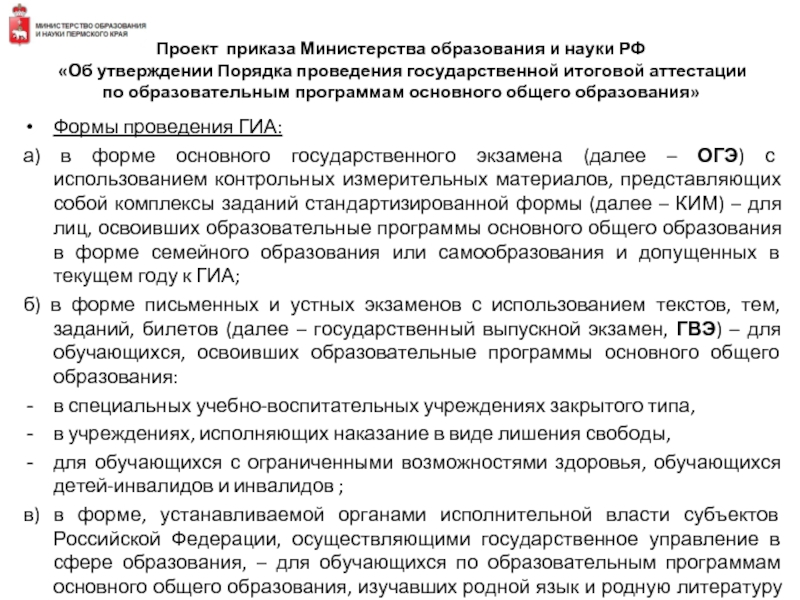 Министерство образования и науки Пермского края обеспечивает проведение ГИА :