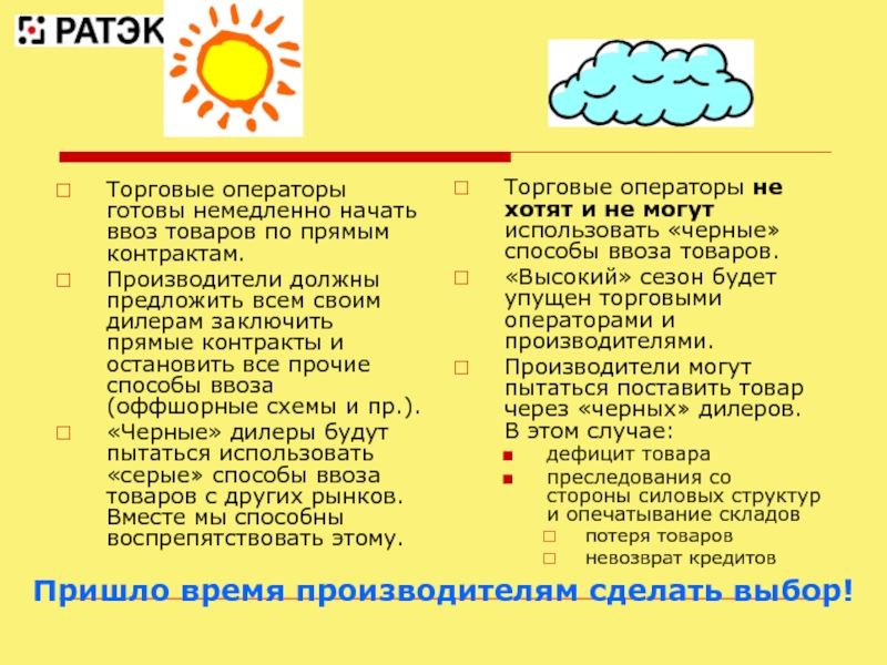 Производители могут пытаться поставить товар через «черных» дилеров. В этом случае: