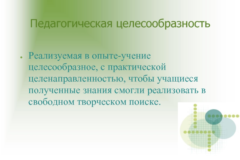Реализуемая в опыте-учение целесообразное, с практической целенаправленностью, чтобы учащиеся полученные