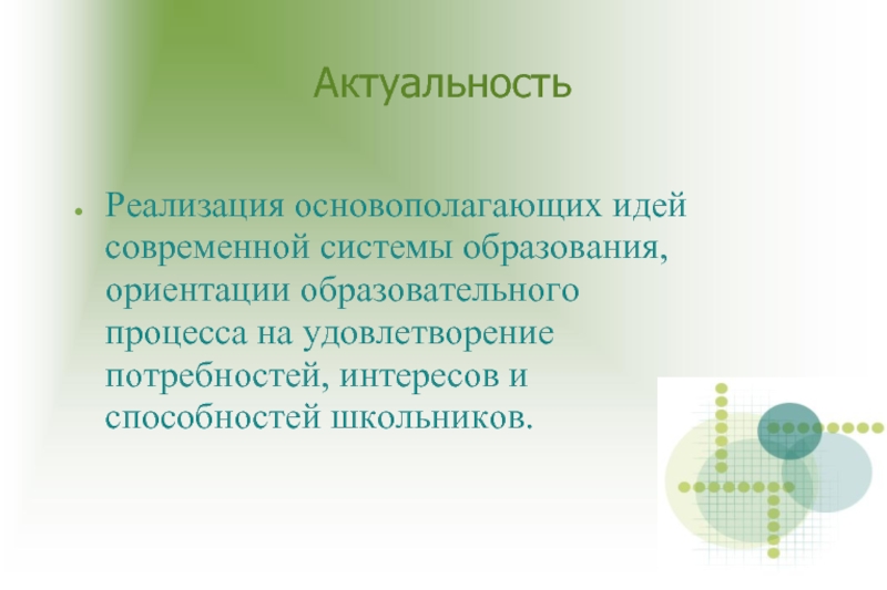 Реализация основополагающих идей современной системы образования, ориентации образовательного процесса на удовлетворение