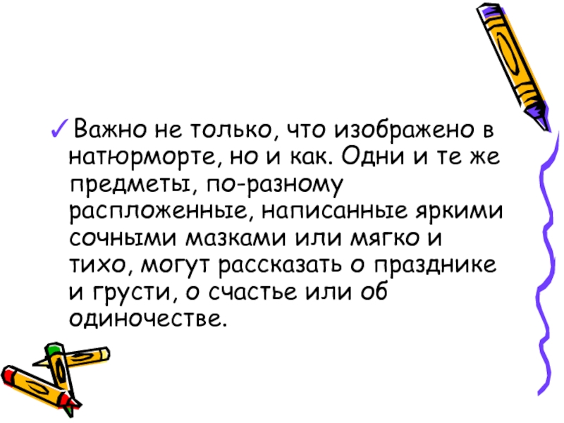 ✓Важно не только, что изображено в натюрморте, но и как. Одни