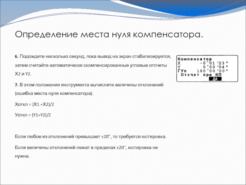 15. Запись, свидетельствующая о ненадлежащем горизонтировании прибора