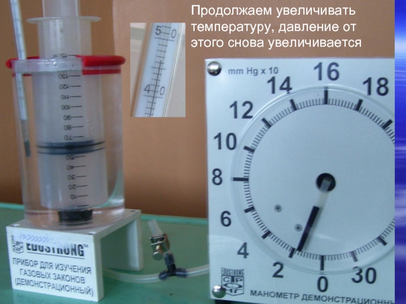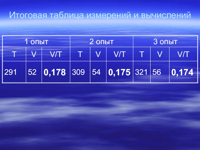 Будем повышать температуру воздуха в цилиндре под поршнем и следить за изменением давления. Результаты будем заносить в таблицу.