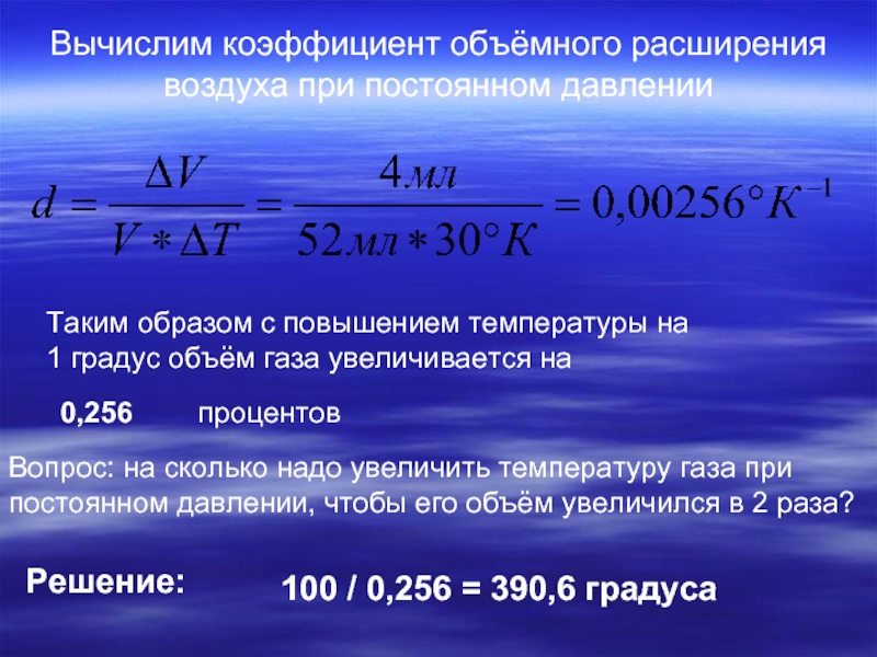 Вопрос: на сколько надо увеличить температуру газа при постоянном давлении, чтобы его объём увеличился в 2 раза?