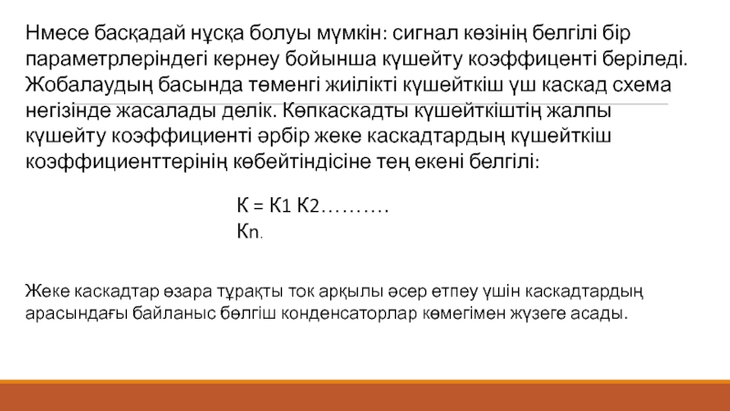 Жеке каскадтар өзара тұрақты ток арқылы әсер етпеу үшін каскадтардың арасындағы байланыс бөлгіш конденсаторлар көмегімен жүзеге асады.