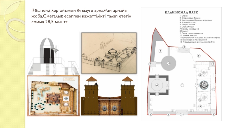 Слайд 10Көшпенділер ойынын өткізуге арналған арнайы жоба,Сметалық есеппен кажеттілікті талап ететін сомма