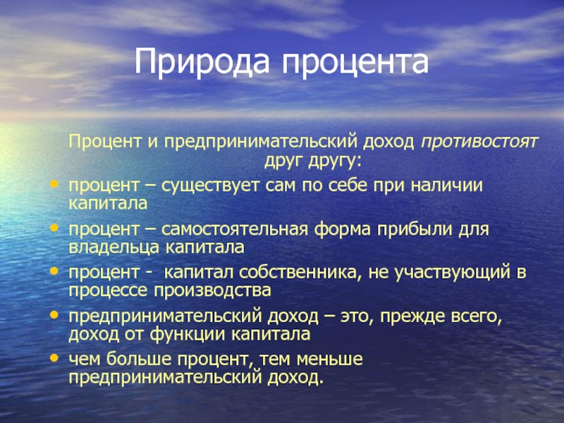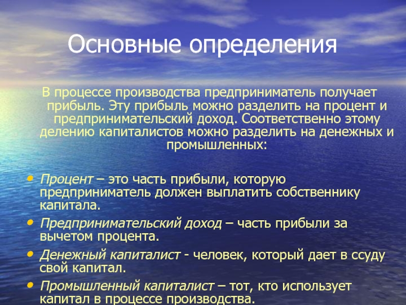 Процент – это часть прибыли, которую предприниматель должен выплатить собственнику капитала.