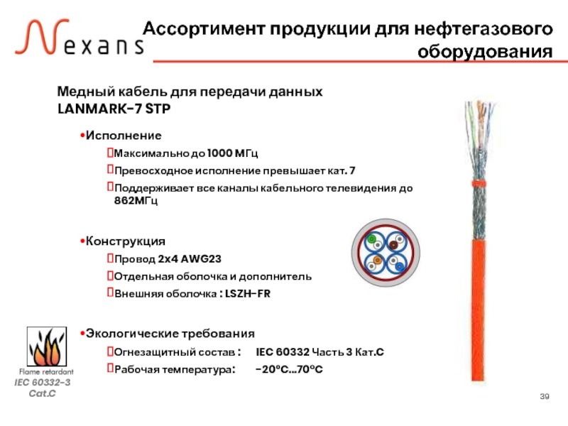 Огневая защита (IEC 60332-1, NFC 32070 C2)