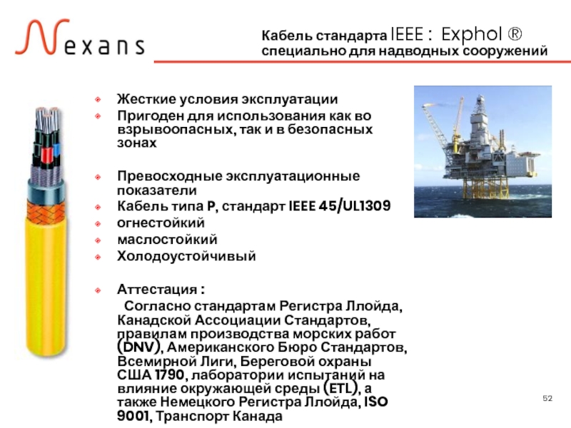 Кабель стандарта IEEE : Exphol ® специально для надводных сооружений