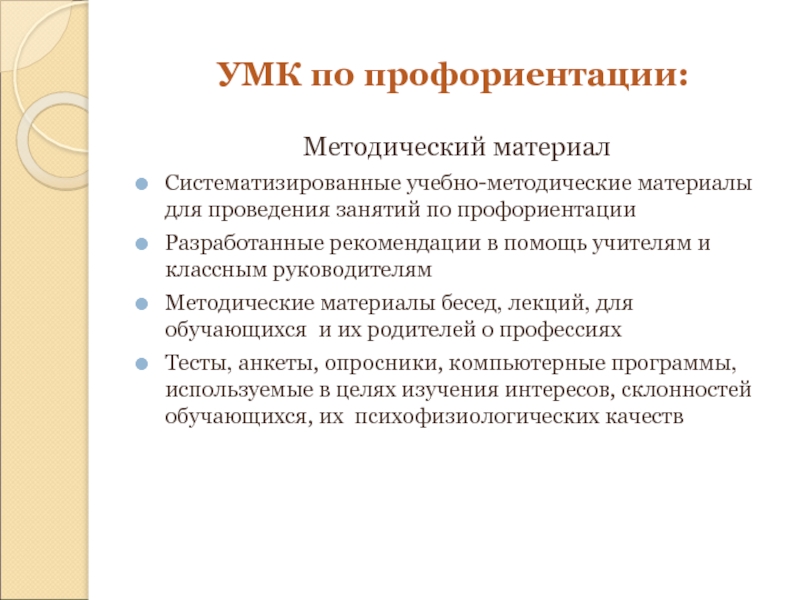 Систематизированные учебно-методические материалы для проведения занятий по профориентации