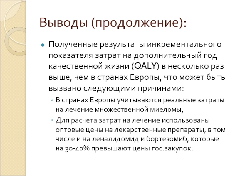 исследование по изучению затрат на дополнительный год качественной жизни (QALY) у больных с множественной миеломой.