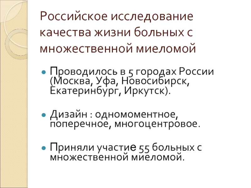 Слайд 6Российское исследование качества жизни больных с множественной миеломой
