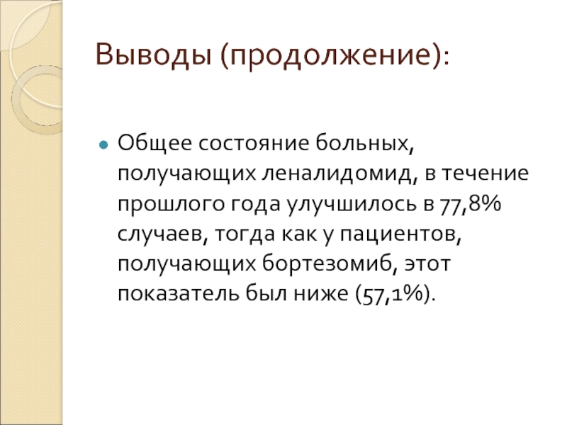 в 77,8% случаев, тогда как у пациентов, получающих бортезомиб, этот показатель был ниже (57,1%).