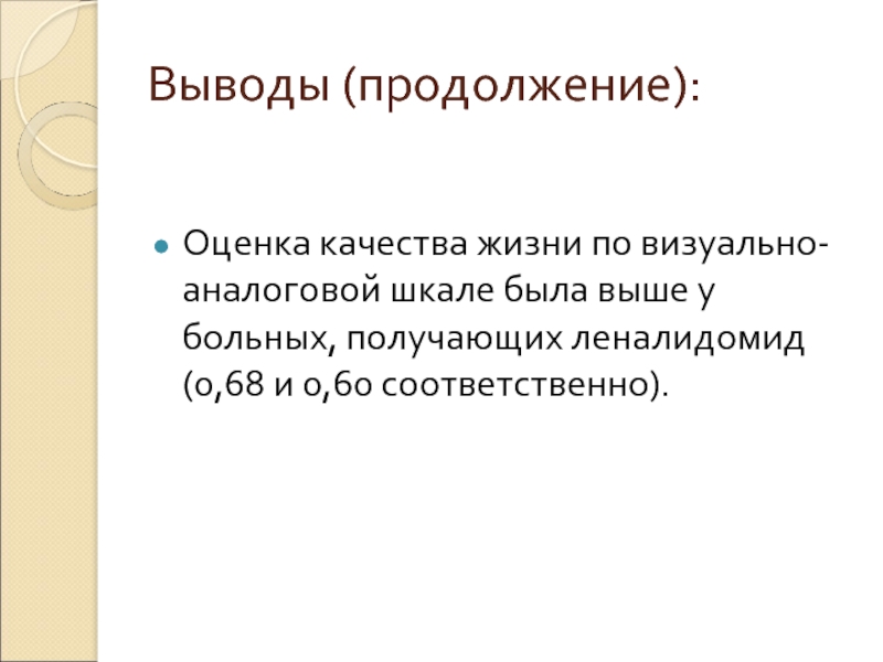 получающих леналидомид (0,68 и 0,60 соответственно).