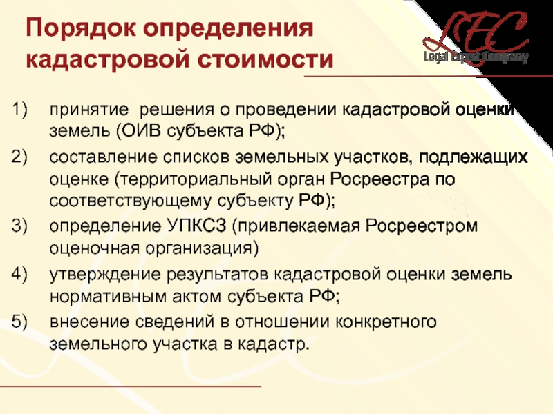 утверждение результатов кадастровой оценки земель нормативным актом субъекта РФ;
