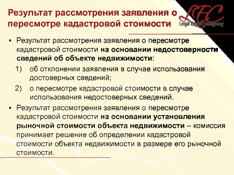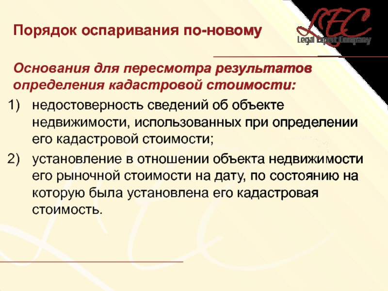 Основания для пересмотра результатов определения кадастровой стоимости: