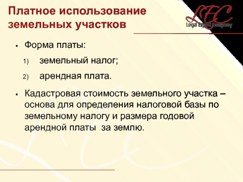 основа для определения налоговой базы по земельному налогу и размера годовой арендной платы за землю.