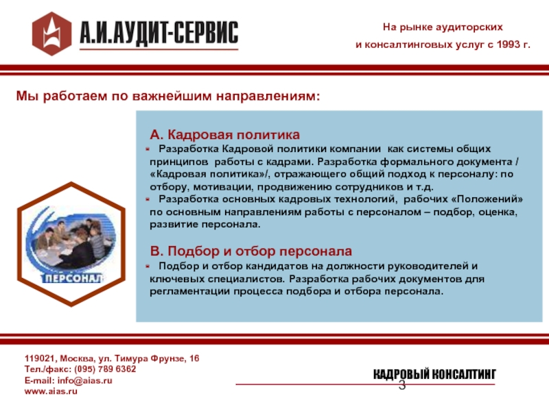 Разработка Кадровой политики компании как системы общих принципов работы с кадрами. Разработка формального документа /«Кадровая политика»/, отражающего общий подход к персоналу: по отбору, мотивации, продвижению сотрудников и т.д.