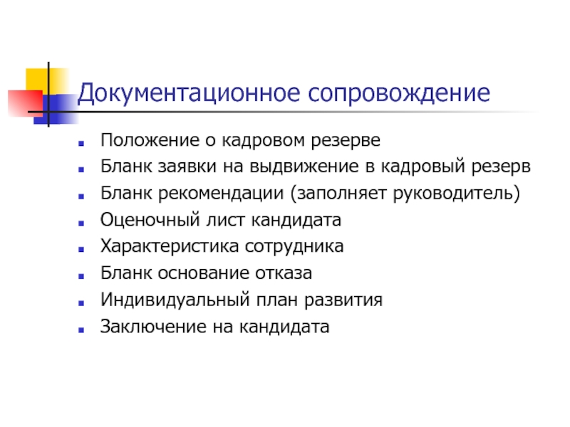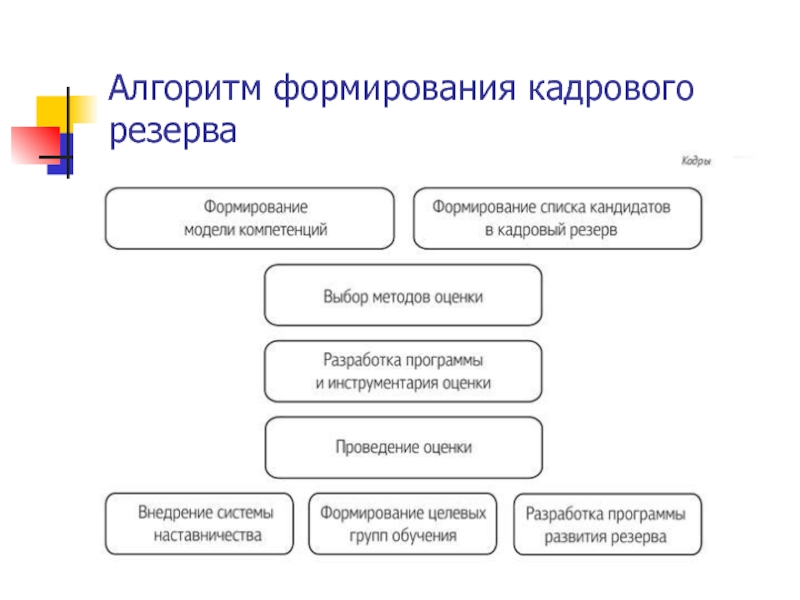 - предварительное изучение и оценка кандидатов на зачисление в резерв;