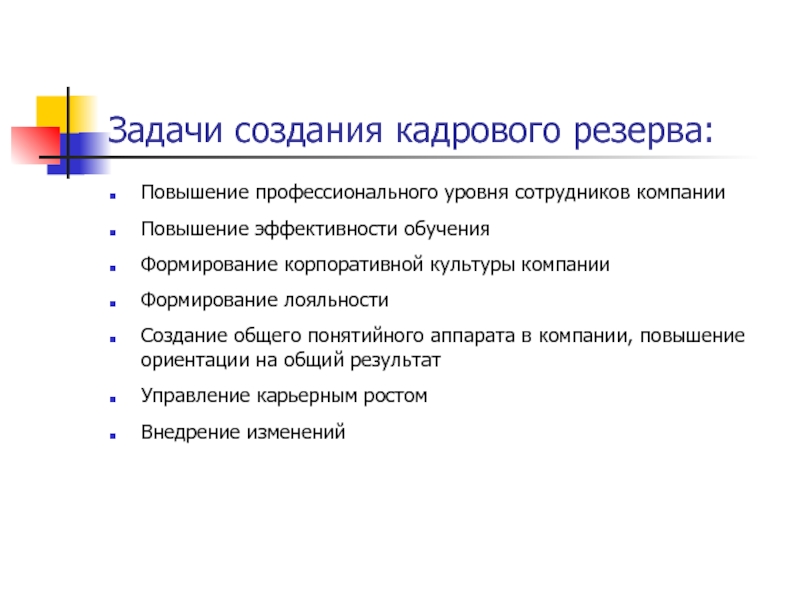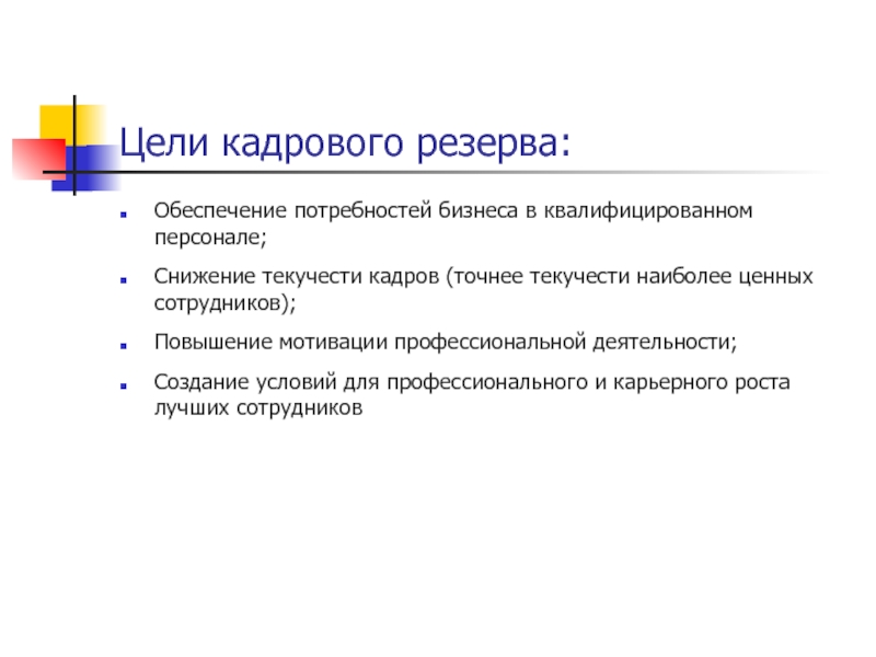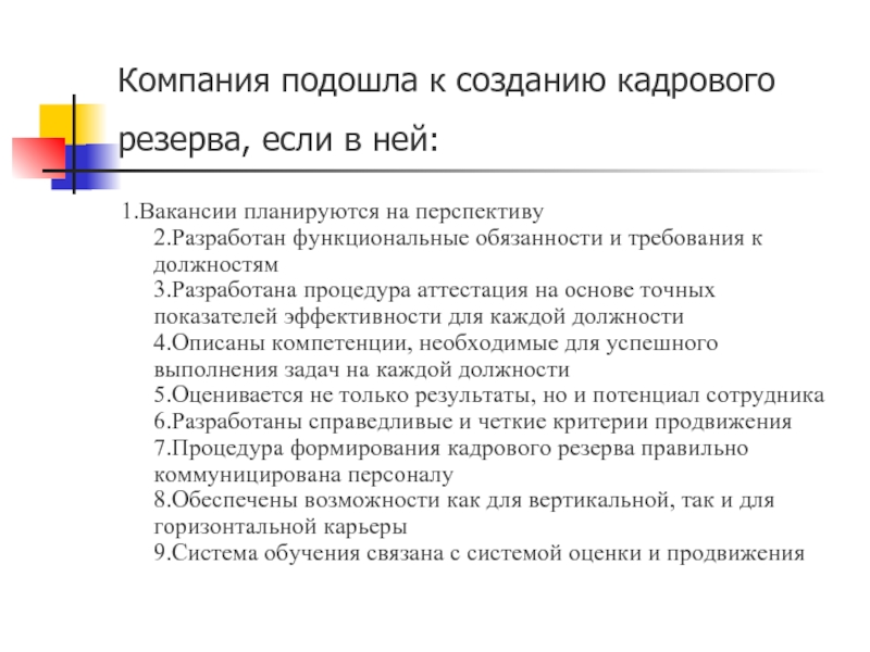 Слайд 12Компания подошла к созданию кадрового резерва, если в ней: