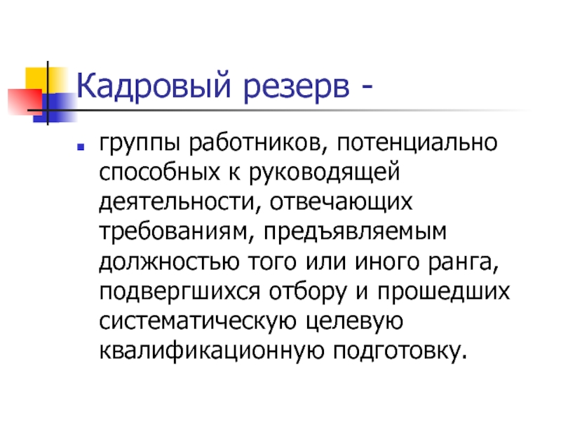 группы работников, потенциально способных к руководящей деятельности, отвечающих требованиям,