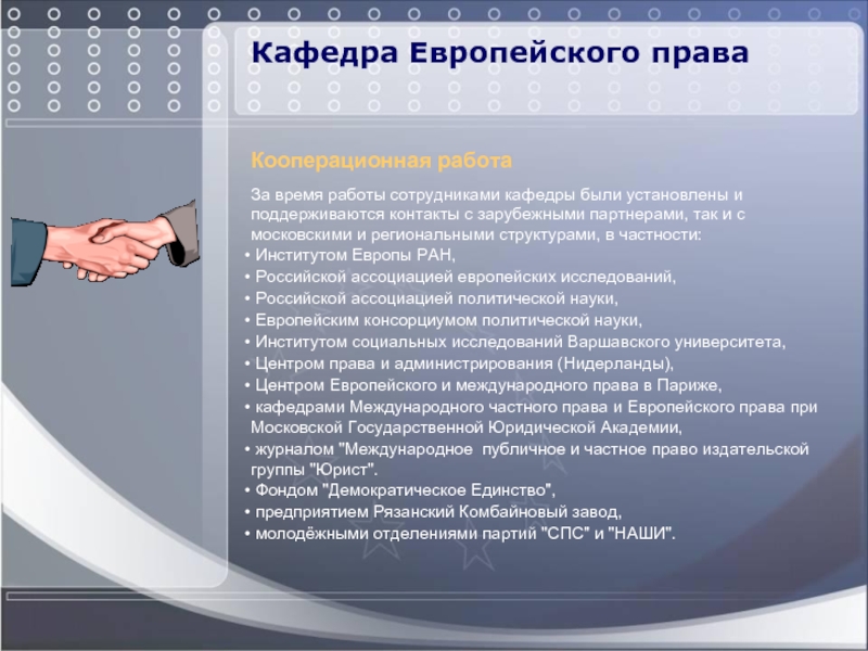 Одной из основных целей деятельности кафедры Европейского