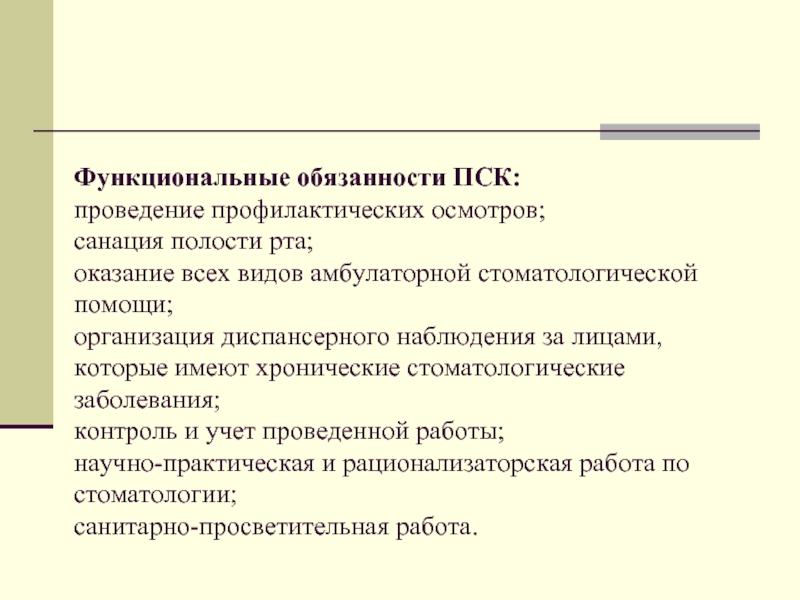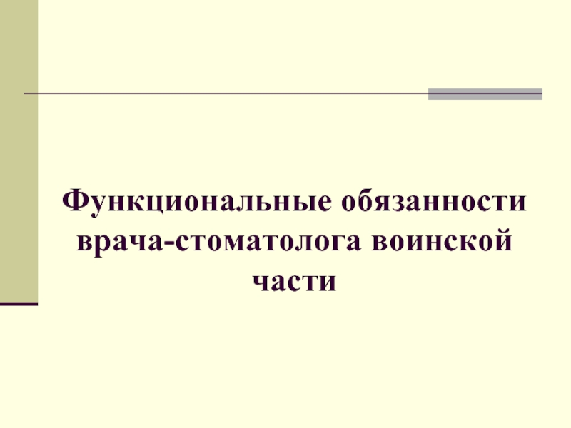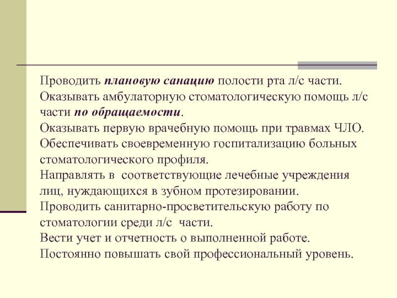 Слайд 27Функциональные обязанности врача-стоматолога воинской части