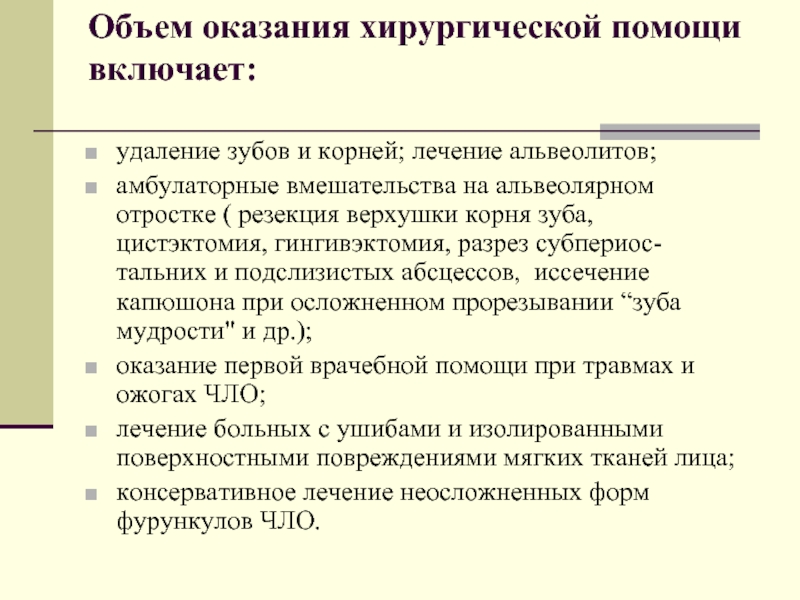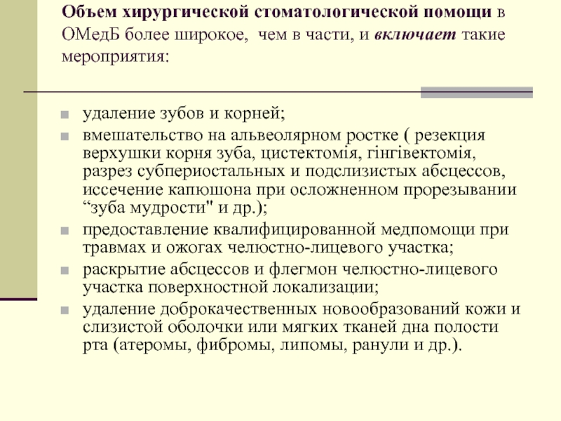 Слайд 36Объем хирургической стоматологической помощи в ОМедБ более широкое, чем в части,