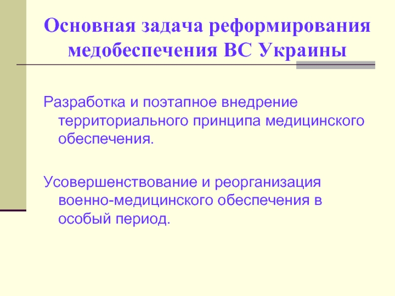 Слайд 4Основная задача реформирования медобеспечения ВС Украины