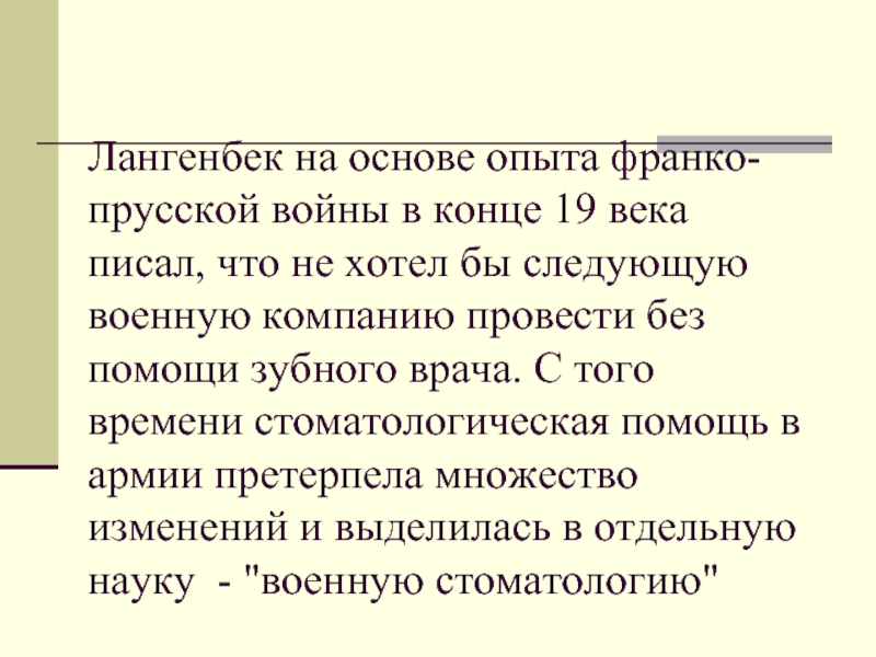 Слайд 22Лангенбек на основе опыта франко-прусской войны в конце 19 века писал,