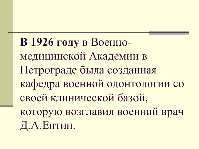 военной одонтологии со своей клинической базой, которую возглавил военний врач Д.А.Ентин.