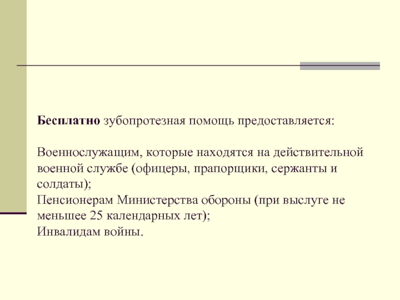 Слайд 48Бесплатно зубопротезная помощь предоставляется: