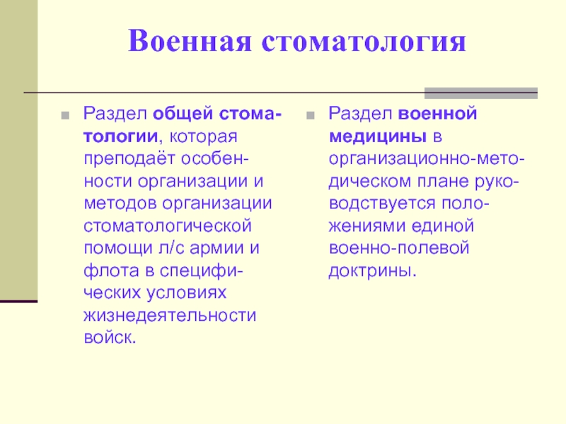 Раздел общей стома- тологии, которая преподаёт особен- ности организации и