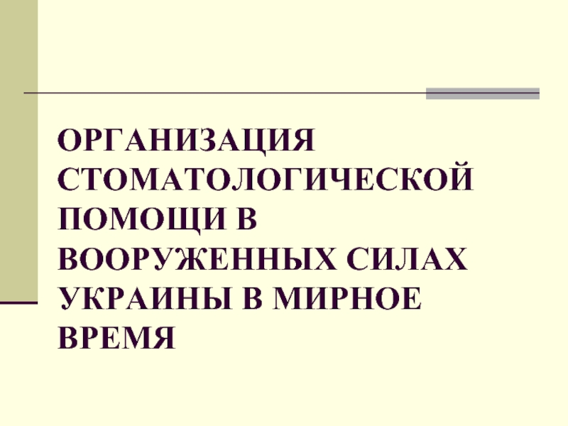 Слайд 23ОРГАНИЗАЦИЯ СТОМАТОЛОГИЧЕСКОЙ ПОМОЩИ В ВООРУЖЕННЫХ СИЛАХ УКРАИНЫ В МИРНОЕ ВРЕМЯ