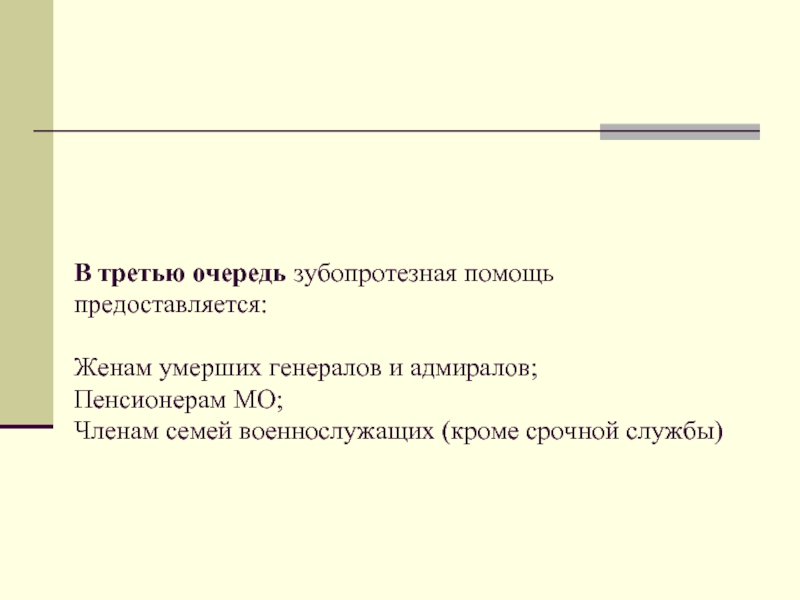 Слайд 47В третью очередь зубопротезная помощь предоставляется: