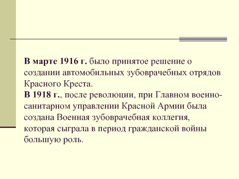 Слайд 15В марте 1916 г. было принятое решение о создании автомобильных зубоврачебных