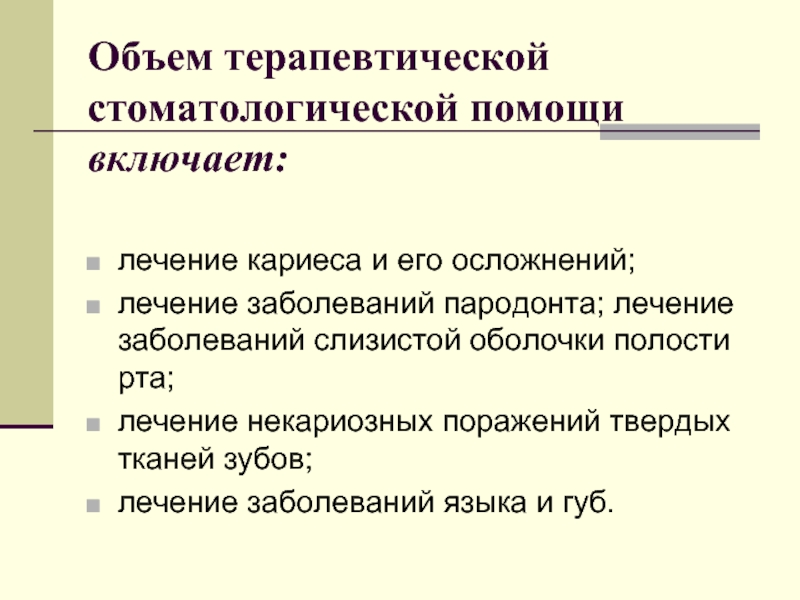 Слайд 31Объем терапевтической стоматологической помощи включает: