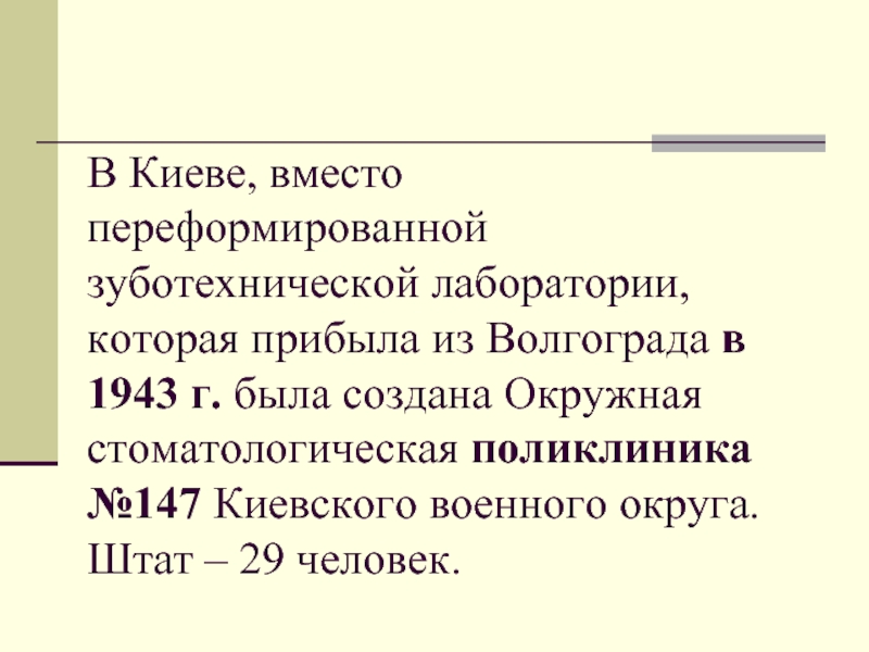Слайд 20В Киеве, вместо переформированной зуботехнической лаборатории, которая прибыла из Волгограда в
