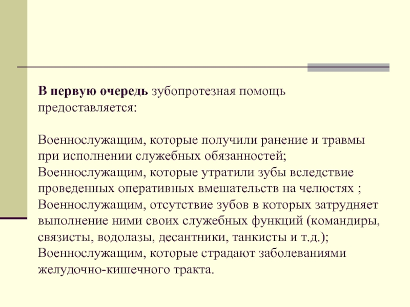 Слайд 45В первую очередь зубопротезная помощь предоставляется: