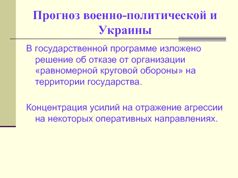 Концентрация усилий на отражение агрессии на некоторых оперативных направлениях.
