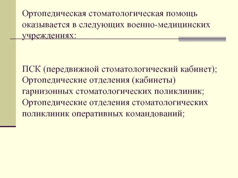 Слайд 42Ортопедическая стоматологическая помощь оказывается в следующих военно-медицинских учреждениях: