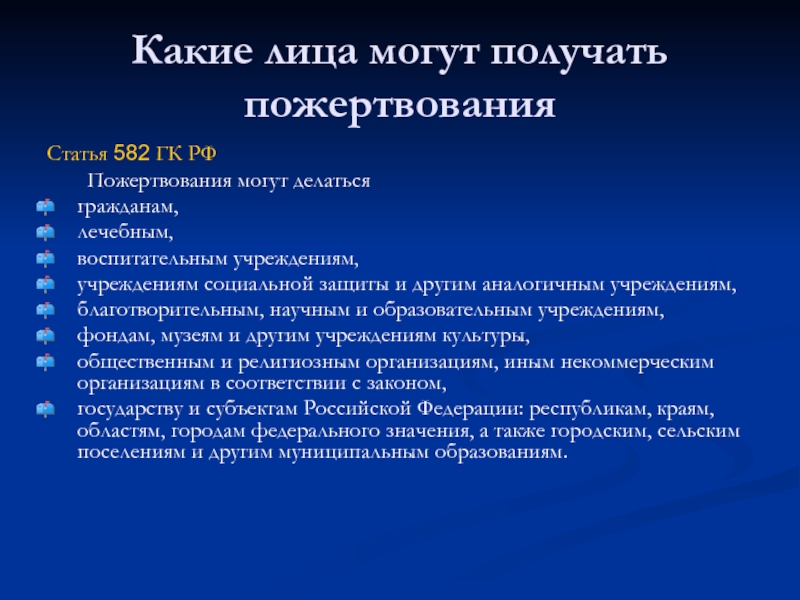 на общеполезные цели (понятие «общеполезные» в законодательстве РФ отсутствует)