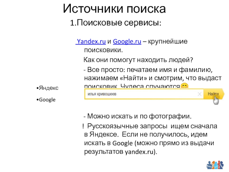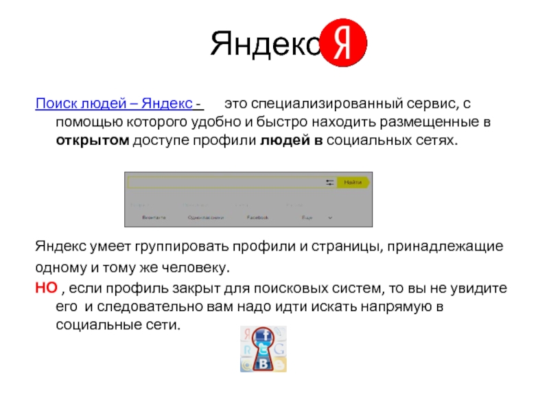 Поиск людей – Яндекс - это специализированный сервис, с помощью которого удобно и быстро находить размещенные в открытом доступе профили людей в социальных сетях.