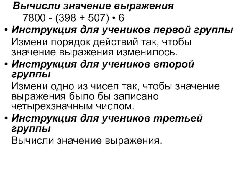 Измени порядок действий так, чтобы значение выражения изменилось.