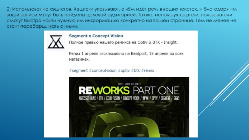 Слайд 92) Использование хэштегов. Хэштеги указывают, о чём идёт речь в ваших