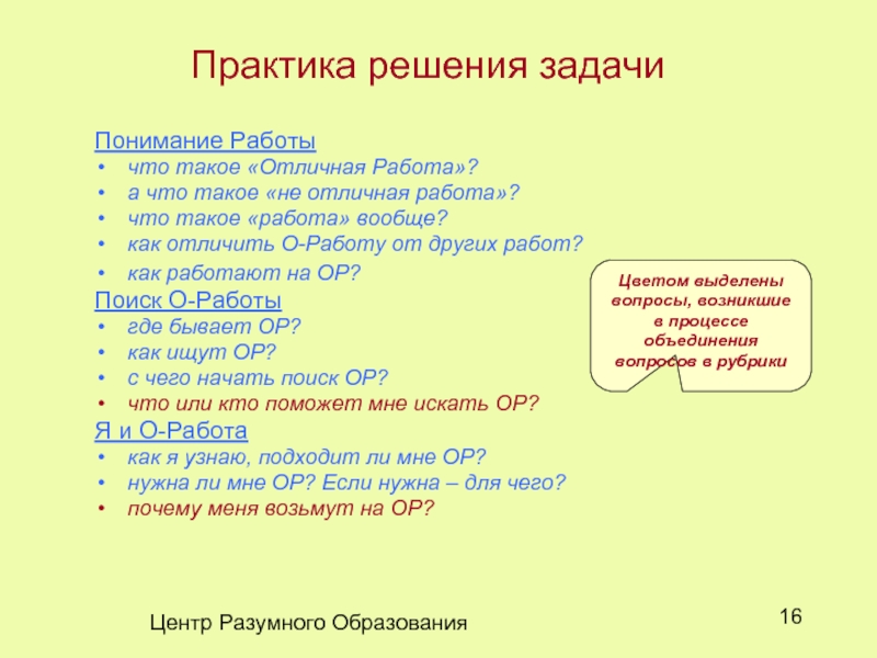 Цветом выделены вопросы, возникшие в процессе объединения вопросов в рубрики