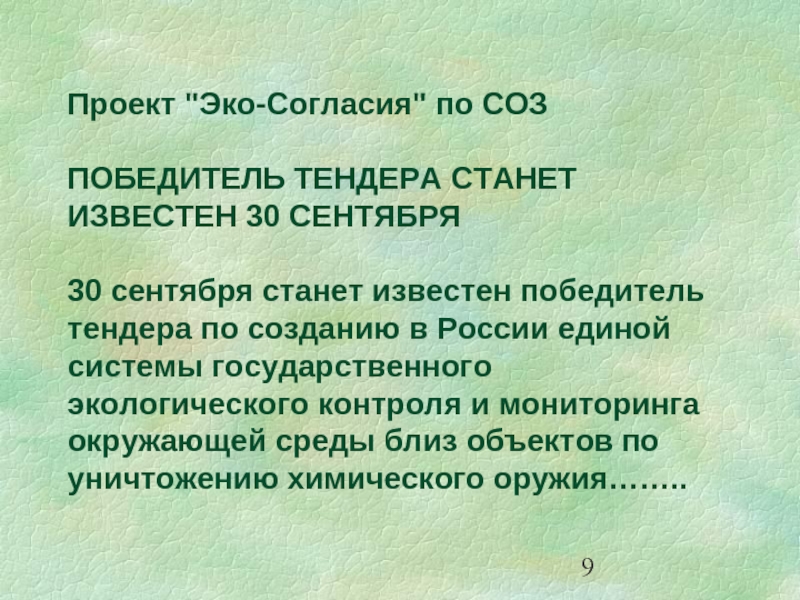 Слайд 9Проект "Эко-Согласия" по СОЗ